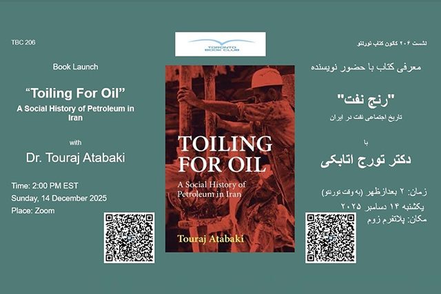 کانون کتاب تورنتو اعلام کرده است که کتاب «رنج نفت، تاریخ اجتماعی نفت در ایران»، آخرین کار پژوهشی دکتر تورج اتابکی، در نشست ۲۰۶ کانون کتاب تورنتو معرفی خواهد شد. این نشست در ساعت ۲ بعدازظهر روز یکشنبه ۱۴ دسامبر ۲۰۲۵ در پلاتفرم زوم برگزار میشود.