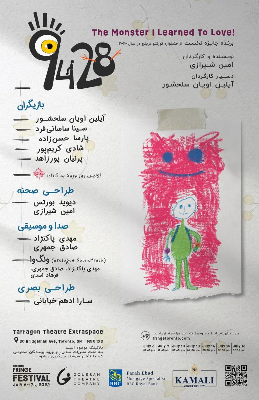 همچنین امین شیرازی، نویسندگی و کارگردانی نمایش تئاتر ۹۴۲۸ را برعهده دارد. امین شیرازی نیز از سال ۲۰۱۴ در کانادا مقیم شده و در آثارش، دغدغههای مهاجران و به ویژه کودکان مهاجر را به تصویر کشیده است.