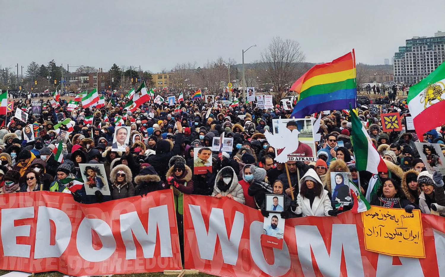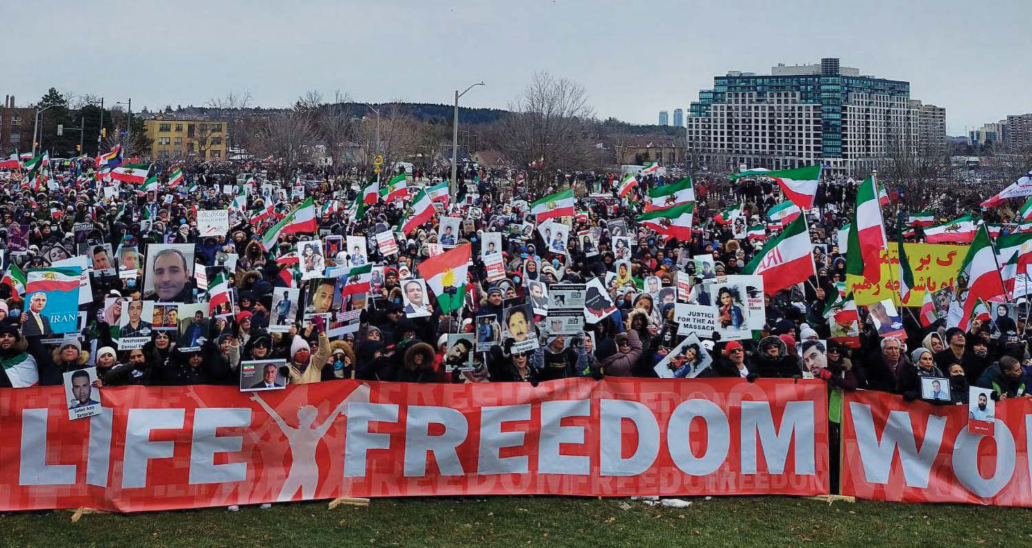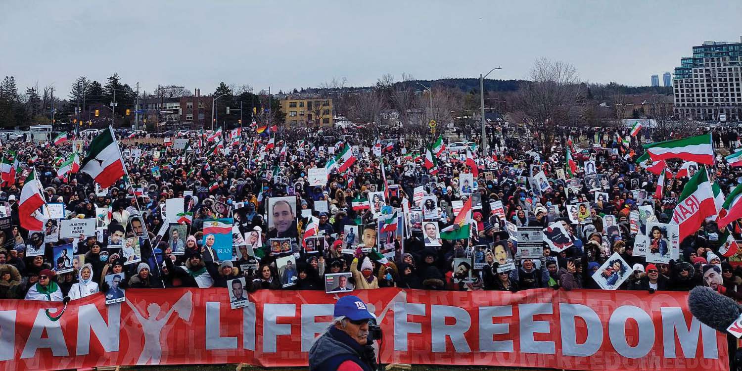 با وجود سرمای بسیار شدید و بارش برف جمعیت قابلتوجهی از ایرانیان ساکن تورنتو چیزی حدود ۵۰ هزار نفر به این گردهمایی پیوسته بودند که ابتدا بهصورت راهپیمایی از خیابان شانزدهم یانگ شروع شد. شعارها علیه نظام جمهوری اسلامی و همینطور مشخصاً کشتار آبان ماه و کشته شدن کودکان بسیاری در این مدت بود.
