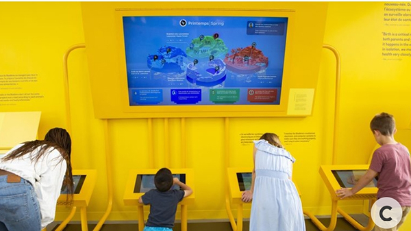 بیودوم که فضایی سرشار از زندگی است، در ورزشگاهی که برای بازیهای المپیک تابستانی مونترال در سال ۱۹۷۶ ساخت شد، ایجاد شده و شکل گرد آن یک فسیلی دریایی به نام تریلوبیت را تداعی میکند.