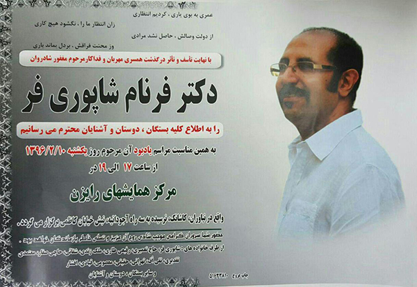 در همان زمان یکی از دوستان مرحوم در زیر اطلاعیهی درگذشتش دربارهی علت مرگ مرموز دکتر شاپوریفر چنین نوشته است: «علت فوت ایشان هنوز مشخص نشده. ایشان ابتدا با درد قفسه سینه به بیمارستان شهدا تجریش میروند. بعد از یک سری آزمایش متوجه میشوند که سکته قلبی در کار نبوده ولی عجیب این بود که هر دو کلیه ایشان در همان زمان از کار افتاده بود. بعد ایشان را به بیمارستان طوس منتقل میکنند و در آنجا بعد از گرفتن عکس ریه متوجه میشوند که قسمتی از یک طرف ریه عفونت دارد. بعد از چند ساعت و عکسبرداری مجدد، عفونت کل ریه را درگیر کرد و متاسفانه دیگر نتوانستند کاری برایشان انجام بدهند و متاسفانه ما ایشان رو از دست دادیم. ولی تمام این مراحل شاید ۴۸ ساعت نشد و اینکه ایشان روزهای قبلش و تمام این مدت هیچ علایمی نداشتند حتی تب و سرفه و تا صبح روزی که رفتند بیمارستان کاملا حالشان خوب بوده! و اینها برای دکترها کاملا عجیب بود. این دوست عزیز و موجود دوستداشتنی برای همیشه از بین ما رفت، ولی ای کاش حداقل علت فوتش مشخص بشود».