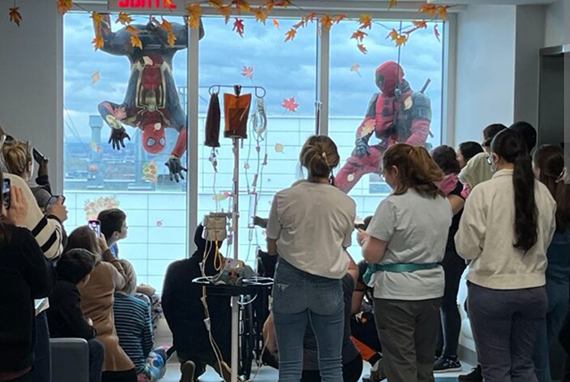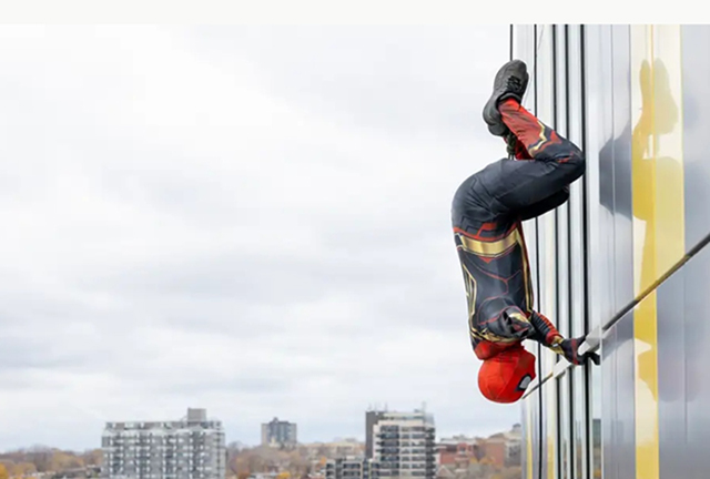 شاید بسیاری از کودکان بستری در بیمارستان کودکان مونترال صبح روز جمعه وقتی به ناگاه یکی از ابرقهرمانان محبوب خود در کارتنهای تلویزیونی را پشت پنجره یا جلو تخت خود دیدند، ابتدا تصور کردند خواب میبینند اما این یک ملاقات متفاوت و غافلگیرکننده بود که برای بالا بردن روحیه کودکان بیمار برنامهریزی شده بود.