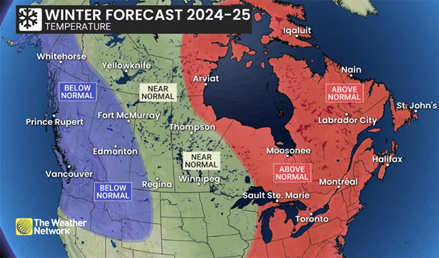 به گفته کریس اسکات، هواشناس ارشد شبکه هواشناسی، زمستان امسال، بهویژه در غرب کانادا، سردتر و تأثیرگذارتر خواهد بود. بر اساس پیشبینیها، مناطق غربی کشور شاهد دماهای سردتر و بارشهای برف بیشتر از حد معمول خواهند بود. این برای کشاورزان استانهای دشت که به رطوبت ذوب برف برای خاکهای خود نیاز دارند، خبر خوبی است. از سوی دیگر، در شرق کشور، بهویژه در انتاریو و کبک، زمستان ملایمتر با بارش بالاتر از میانگین پیشبینی شده است.